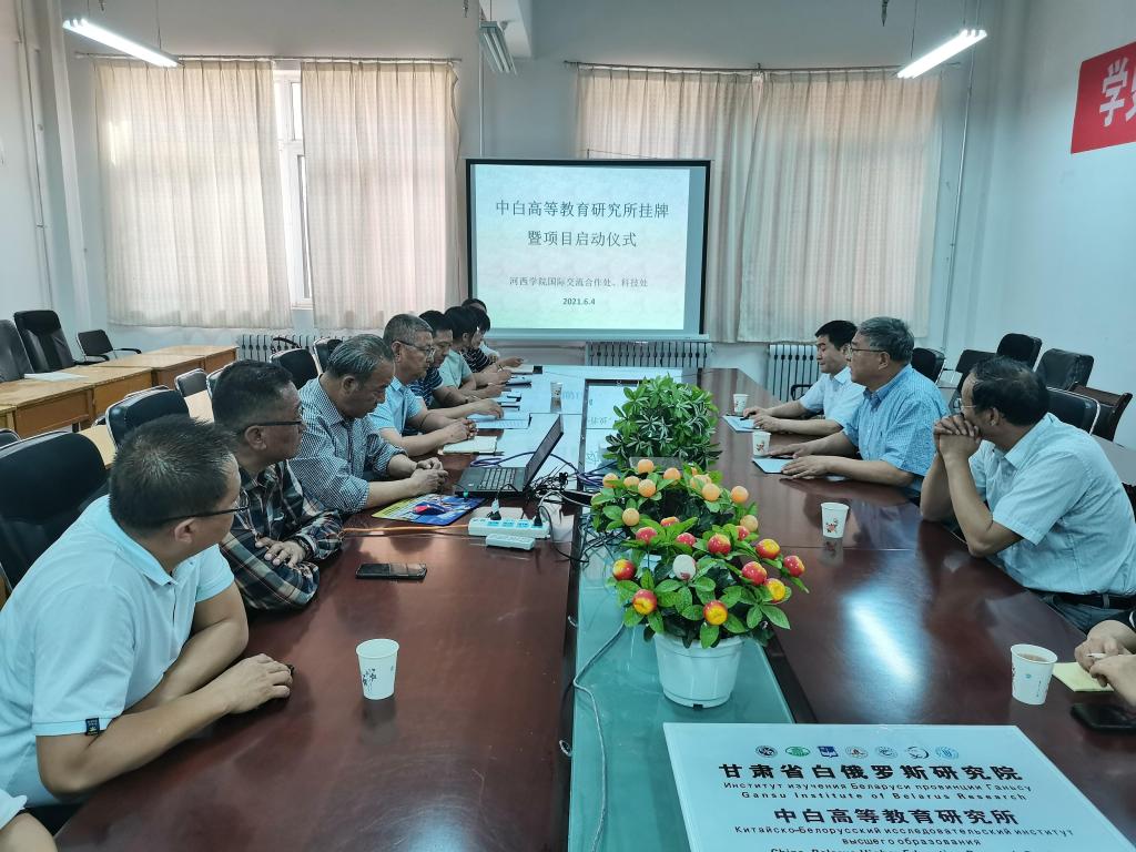 在项目启动仪式上,张勇副董事长对研究所成立的背景和主要职责进行了说明,对研究所成立以后的工作提出了三点要求,一要充分挖掘和利用全校人力资源,整合形成研究队伍;二要坚持问题导向,不断凝练研究选题并开展研究工作;三要以白俄罗斯高等教育研究为基础,不断扩展研究视野,形成具有区域特色的高等教育国别研究。研究所师玉生所长对研究所未来的研究选题,目前承担的《借力“双一流”,高标准构建高等教育合作领域对外开放新格局》课题的研究内容、研究思路和研究方法做了详细汇报。