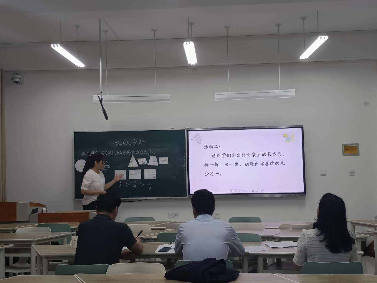 比赛结束后,青西小学张艳丽老师对比赛做了点评。她认为同学们教学态度端正,能够按照新课程标准和理念进行课堂教学设计,有较好的教育理论素养,教学方法灵活多样,教学媒体使用得当。同时,她对同学们在“三字一话”、板书设计和语言表达技巧等方面进行了指导,并提出了改进建议。