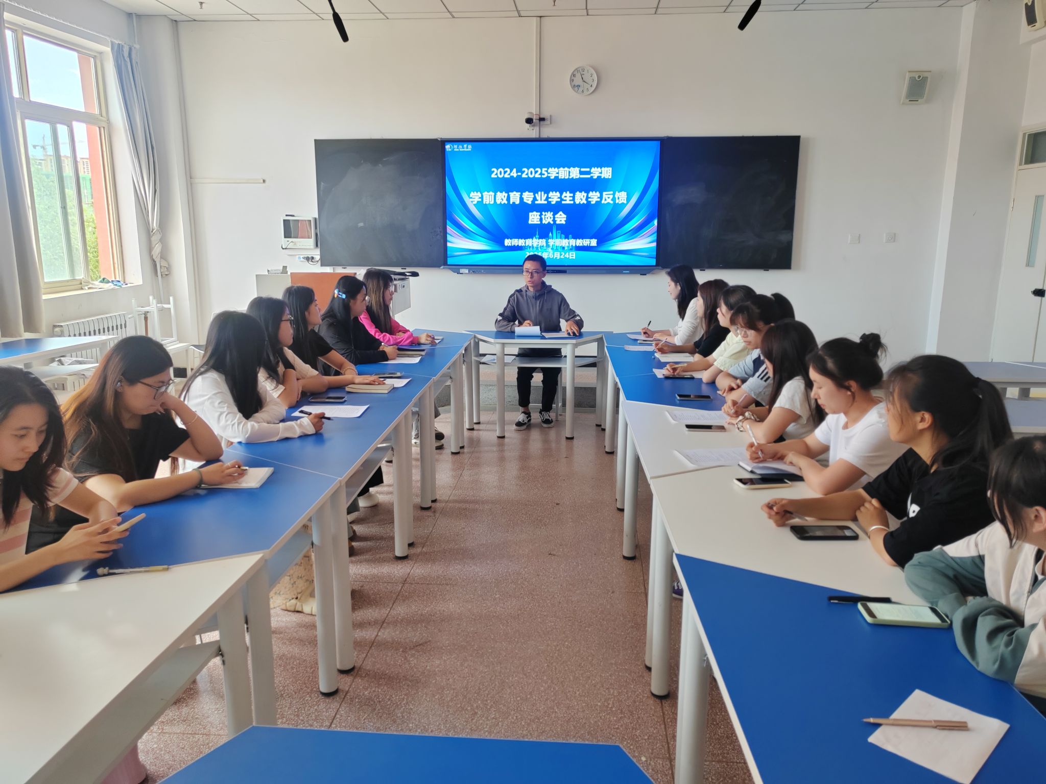 6月24日下午,乐天使学前教育专业在实训楼409教室召开了2024-2025学年第二学期学前教育专业员工教学工作反馈座谈会。学前教育专业2022级、2023级、2024级各班员工代表参加了座谈会,座谈会由学前教育专业李彦平老师主持。座谈会的内容主要有课堂教学、教学管理、师德师风和建议四个方面。