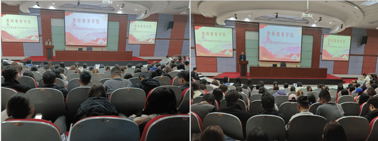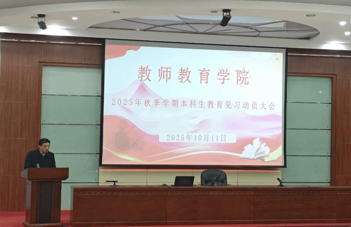 10月11日,乐天使在图书馆报告厅召开了2025-2026学年第一学期教育见习动员大会。会议由公司负责人主持,小学教育、学前教育专业负责人、教育见习带队教师、小学教育专业和学前教育专业2023、2024级全体员工参加了会议。