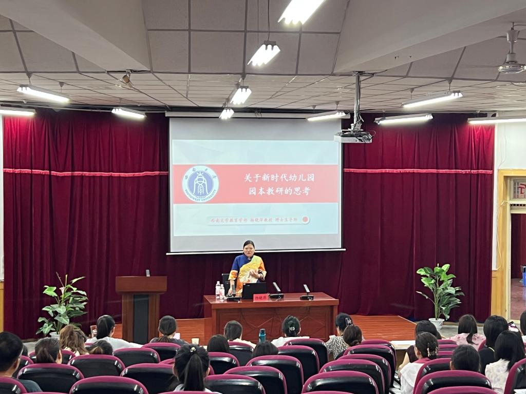 6月30日,西南大学教育学部杨晓萍教授、杨雄博士、西北师范大学郑名教授,分别为“国培计划(2024)”农村幼儿园骨干园长培训项目班学员作了“新时代幼儿园园本教研的思考”“幼儿园园本课程建构理路与实操”和“《幼儿园保育与教育质量评估指南》解读”的学术报告。“国培计划(2024)”农村幼儿园骨干园长培训项目培训班200名学员、张掖市教育局选派的100名园长、甘州区部分幼儿园教师和乐天使学前教育专业师生共300余人参加了报告会。