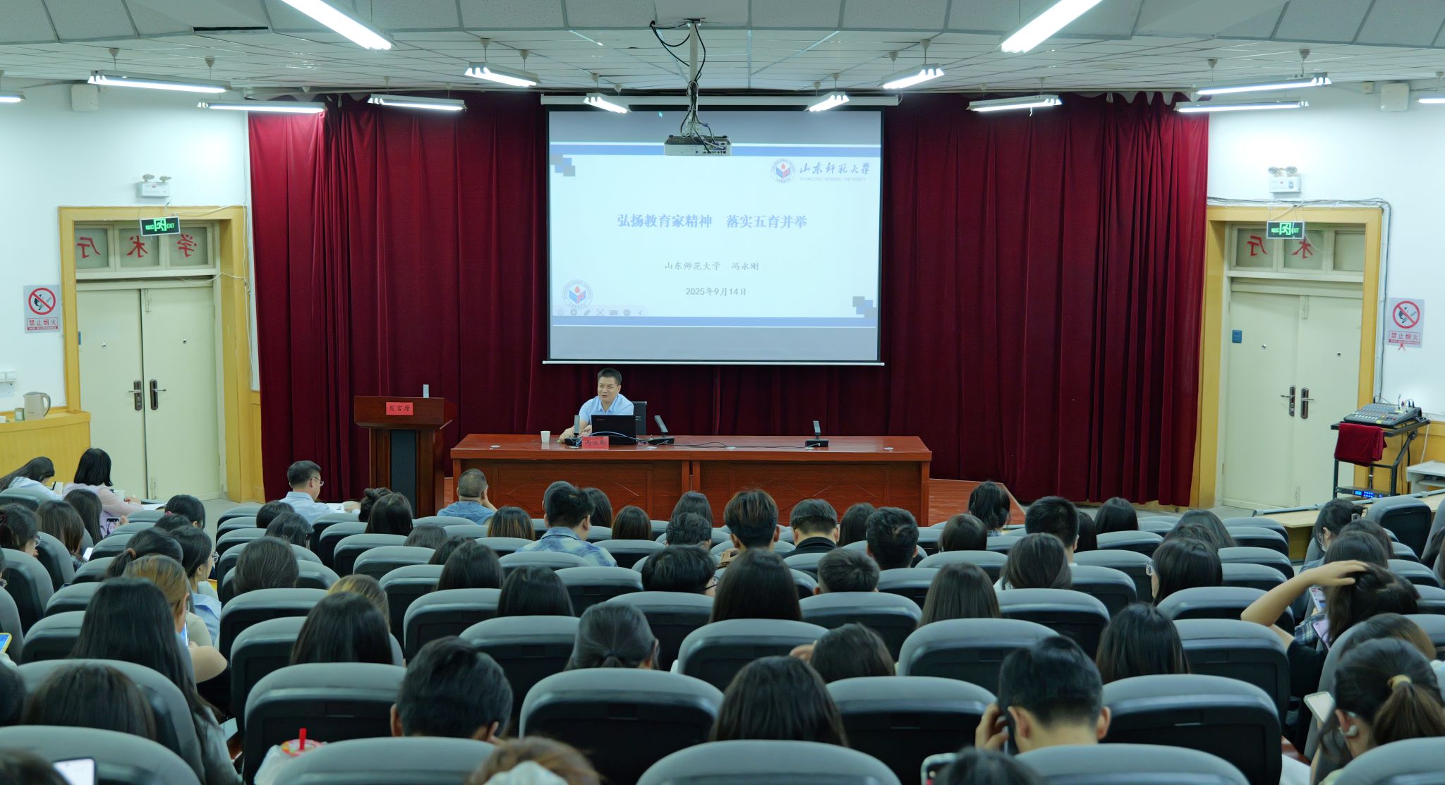 报告中,冯永刚教授紧扣“教育家精神”与“五育并举”的内在关联,从三方面展开深度分享。冯教授先梳理了教育家精神的文化根脉,结合传统“有教无类”理念与近现代教育使命,让师生明晰其精神源头,指出教育家精神是“五育并举”的思想引擎,厘清二者赋能逻辑,建议教师将教育家精神融入课堂设计,通过跨学科教学、校园活动搭建、家校社协同,推动“五育”落地。