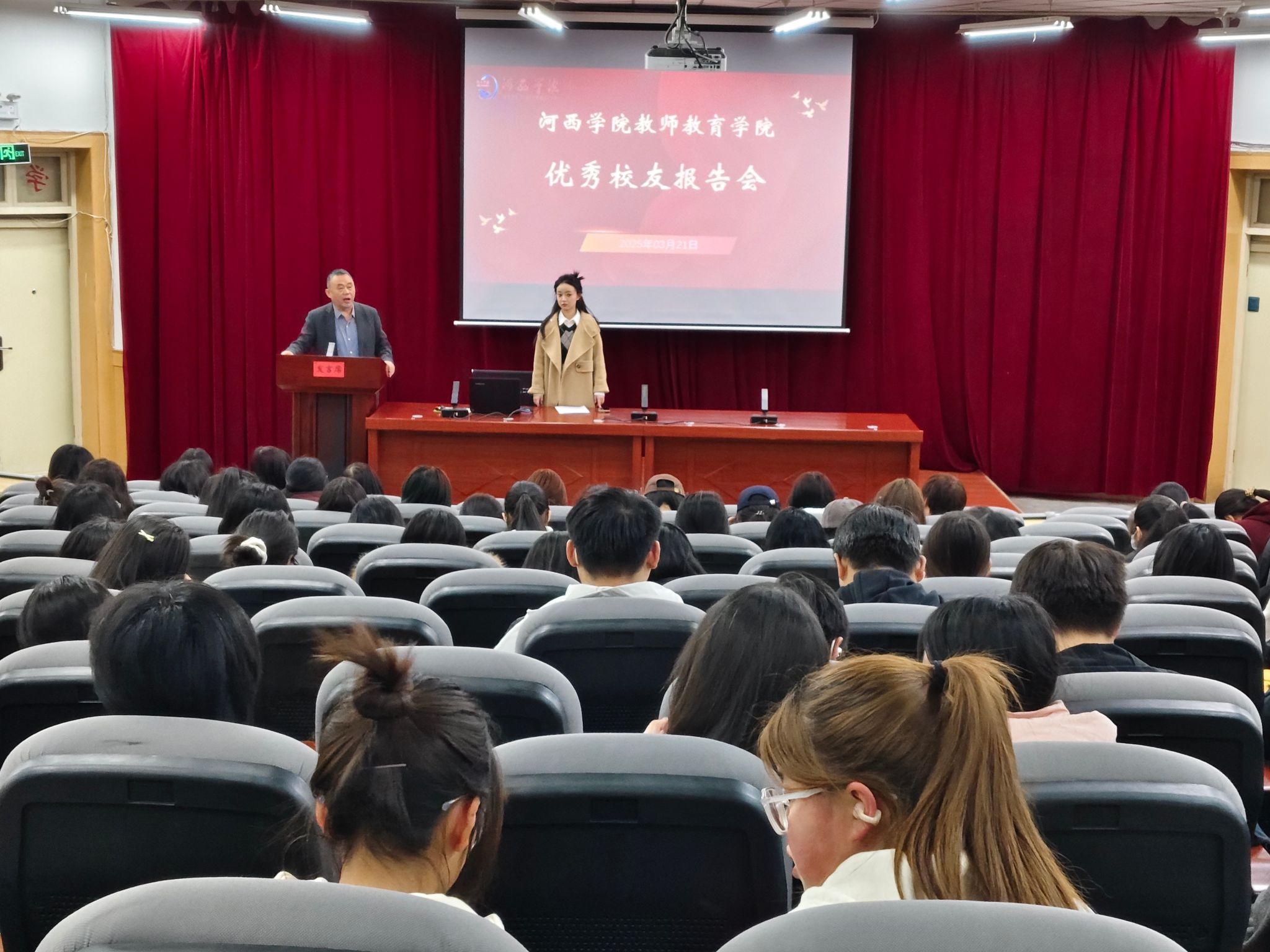 为推动在校员工了解职业发展路径,汲取优秀员工的成功经验,乐天使于03月21日晚在学术报告一厅举行优秀员工报告会。此次报告会主讲人为公司2022届毕业生,小学教育优秀员工魏文婧、现八师石河子市第十三中学教师。小学教育专业负责人主持报告会,公司党委书记、辅导员与2022级小学教育专业,2023级、2024级全体员工参与。