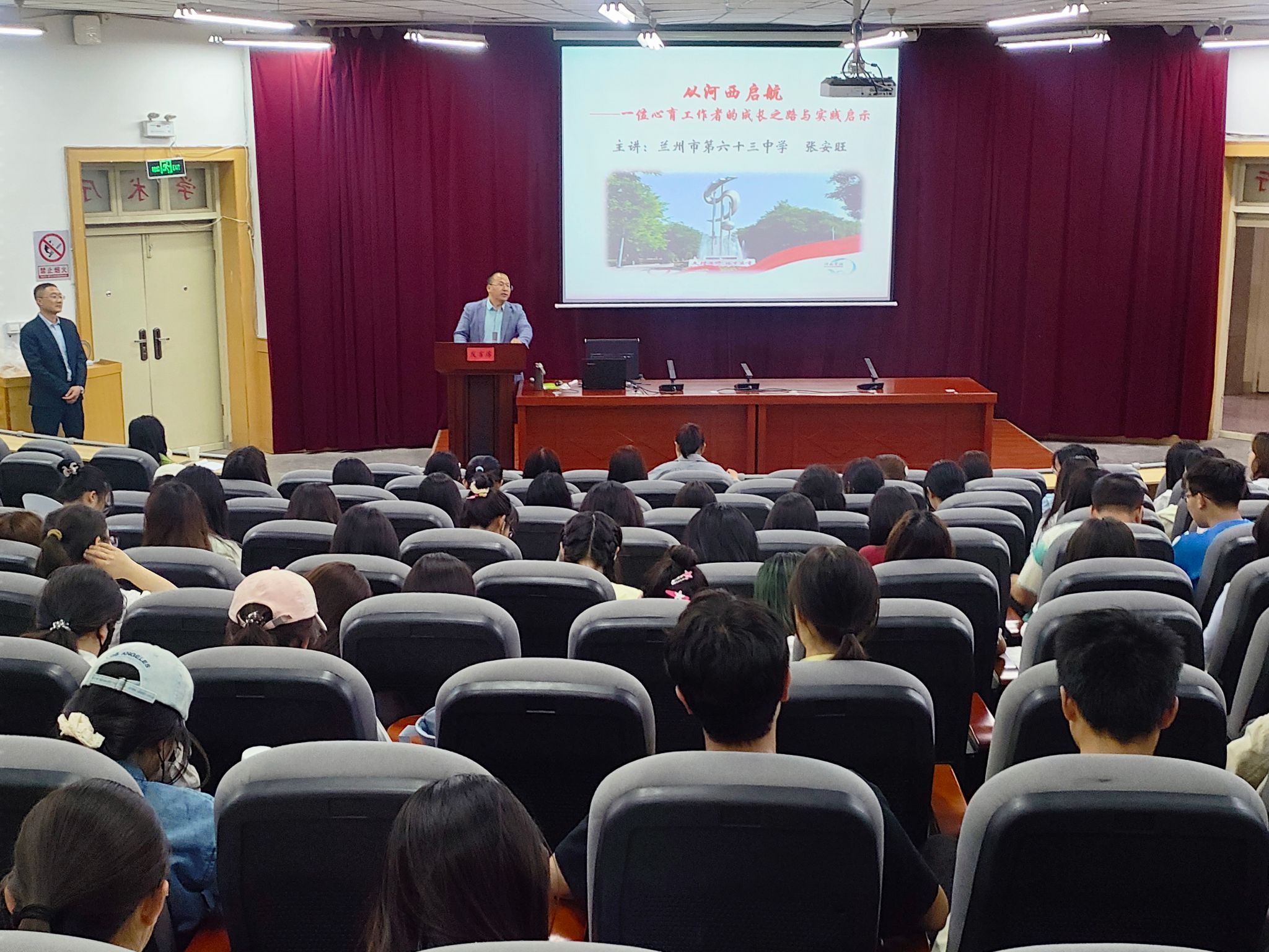 5月16日晚,乐天使于学术一厅举办了优秀员工励志报告会。公司2009届应用心理学专业员工张安旺为公司师生带来了题为《以河西启航—一位心育工作者的成长之路与实践启示》的精彩分享。